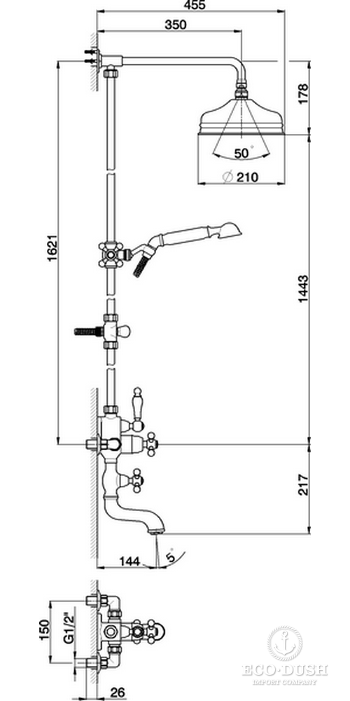 CISAL Arcana Термостатический смеситель для ванны/душа с душевым комплектом и верхним душем, цвет хром