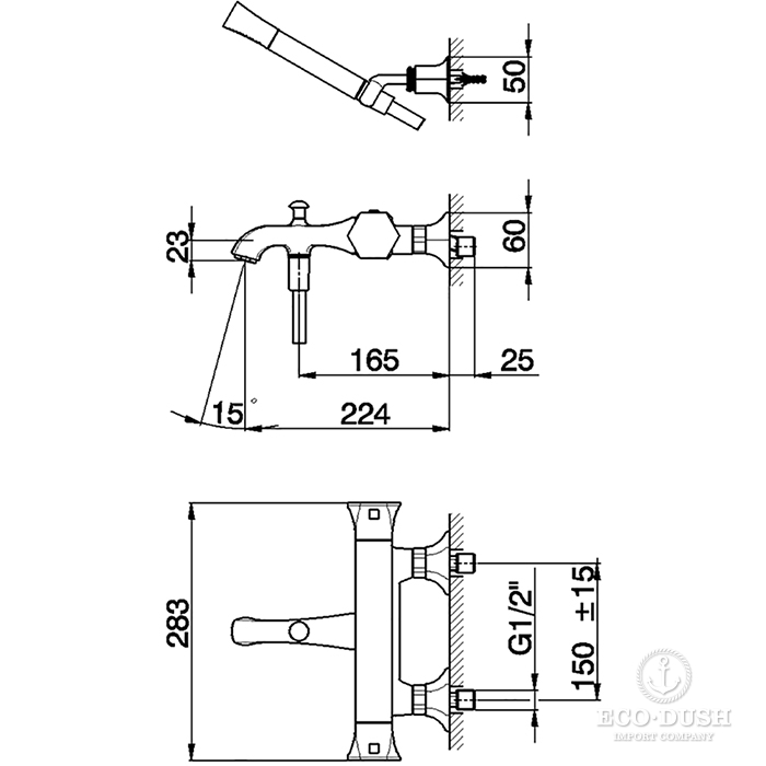 CISAL Cherie Смеситель термостатический настенный для ванны/душа с ручной лейкой,держателем и шлангом, цвет золото