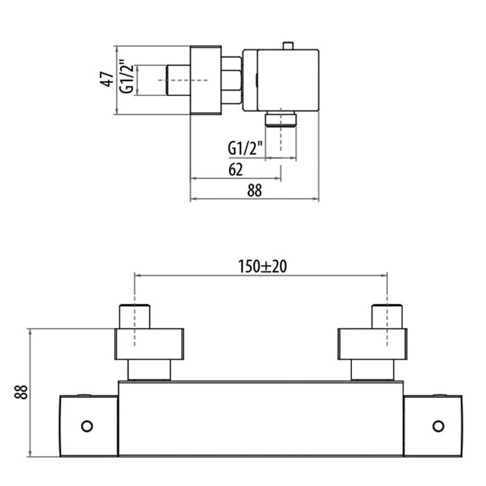 Gattoni Termostatici Термостатический смеситель для душа, выпуск снизу, цвет: хром