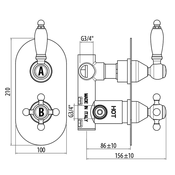 —Gattoni Termostatici Термостатический смеситель для душа скрытого монтажа, на 2 выхода, цвет хром