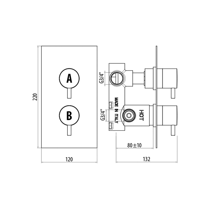 —GATTONI Termostatici Термостатический встраиваемый смеситель для душа 2 рычага на 1 источник, цвет хром