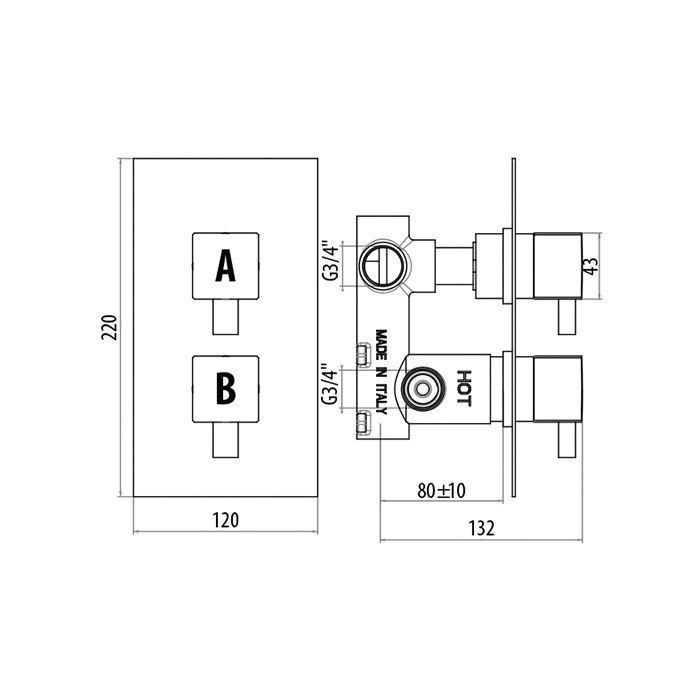 —Gattoni Termostatici Термостатический смеситель для душа скрытого монтажа, на 2 выхода, цвет хром