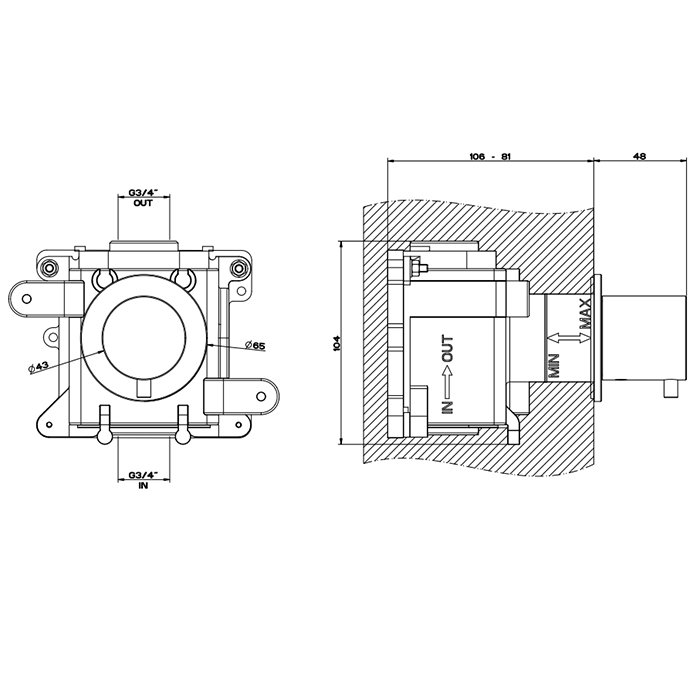 GESSI 316 Встраиваемый термостатический смеситель на 1 источник, резьба 3/4" (внешняя часть), цвет: brushed black metal pvd