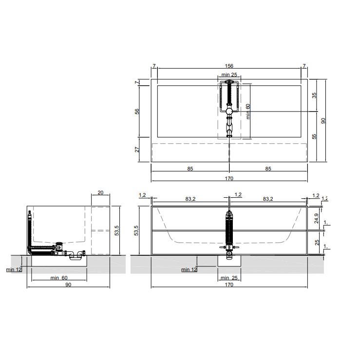 ANTONIO LUPI BIBLIO Ванна отдельностоящая 1700х900х535 мм., с открытыми нишами, с регулируемыми ножками и нажимным донным клапаном, Corian, цвет белый