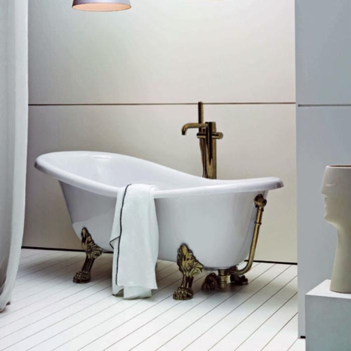 Azzurra VASCHE Ванна отдельностоящая 170х80х72h из материала CRISTALTECH, цвет белый, с ножками и сливом-переливом цвета бронза