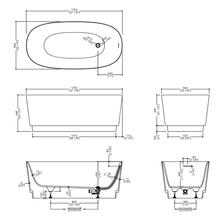Devon&Devon Dove Ванна 170.5х64.7х84.6 см, ИЗ WHITE TEC PLUS, с донным клапаном с крышкой из WHITE TEC (цоколь белый), отдельностоящая