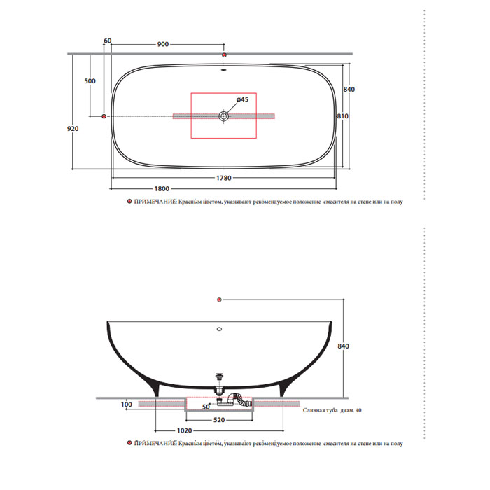 • Отдельностоящие ванны